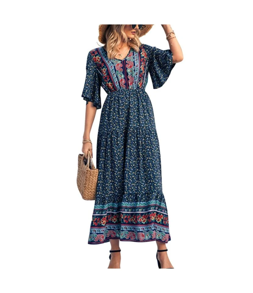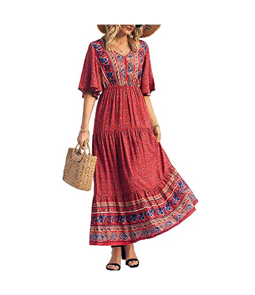 Be the first to review “Boho Style Print V Neck Flare Sleeve Elastic Waist Maxi Dresses Wholesale Bohemian Dress For Women SDN532330” Cancel reply