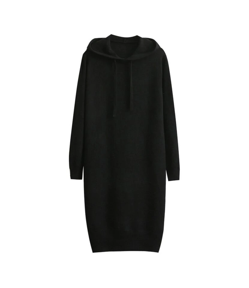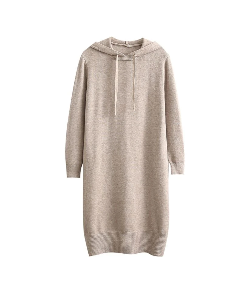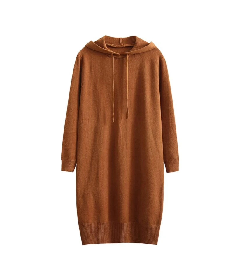 Casual Loose Hooded Drawstring Knit Sweater Dress Solid Color Long Sleeve Midi Wholesale Sweatshirt Dresses SDN562152