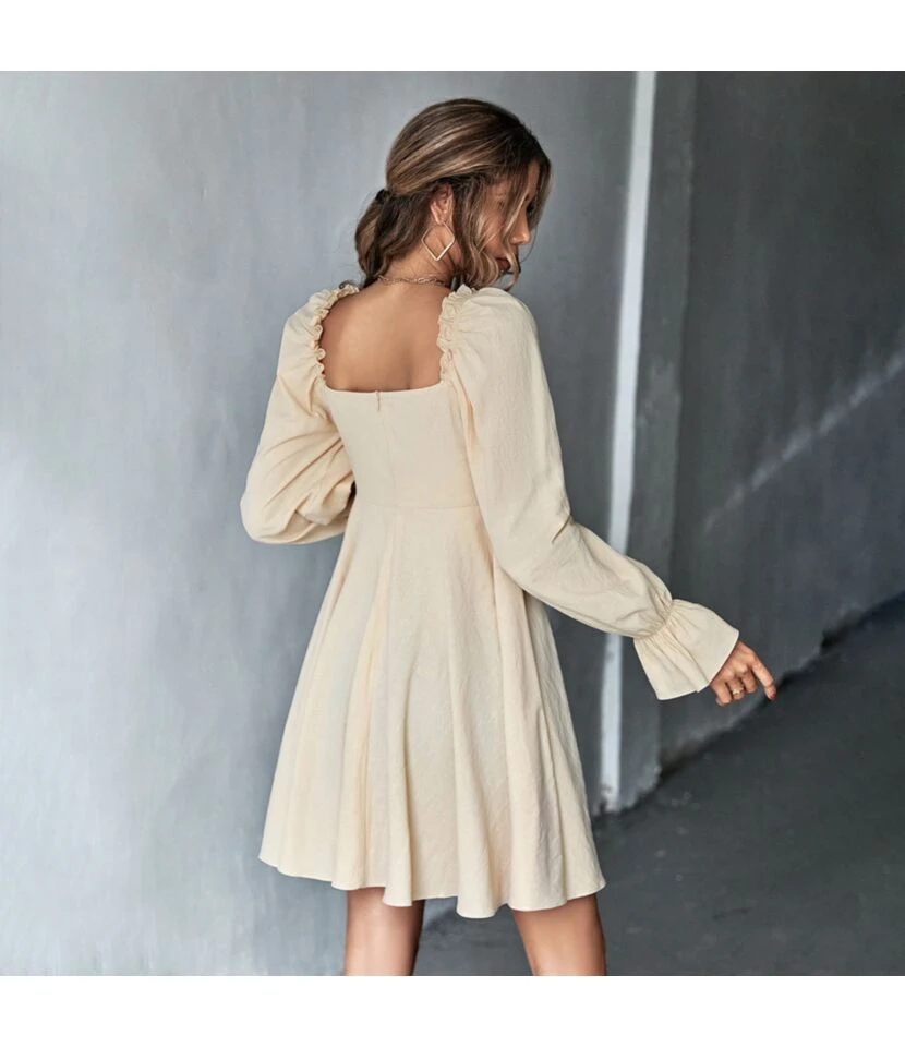Casual Square Neck Bubble Long Sleeve A-Line Mini Dress Wholesale Dresses SDN562884