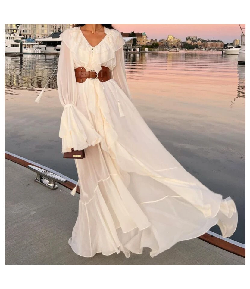 Chiffon Fashion Loose V-Neck Wood Ears Maxi Dress Wholesale Dresses SDV463983