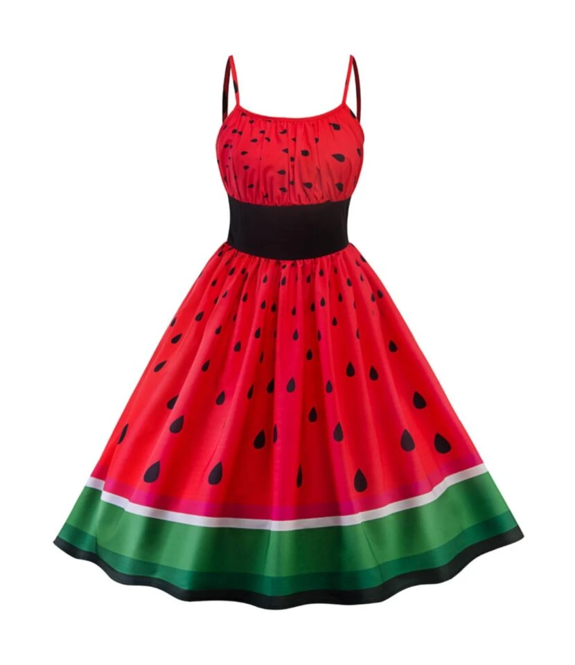 having color block style is just awesome. is a name of trust in the market we are serving our number of clients for the last few years and always provide our clients a great customer service because of our brand name and its value we are one of the leading wholesalers in the market. We always try to provide great quality stuff and unique designs at a very affordable price. For this spring we bring the latest and trending design for you a color-blocking watermelon print sundress. Its black, red, and green color combination provides you with an attractive look. Its fabric and stitching quality is amazing you will fall in love with this dress. its material is made up of high-quality polyester that will provide you confidence. Its pattern is the contrast of color block, fruit and vegetable print with inelastic. All different sizes are available in this from small, medium, large, XL, and XXL at very reasonable prices under a few dollars. Add this unique design into your cart now and get a 30 day return policy. Just look at your wardrobe, and your personality. You must need a change for your self by buying the quality product from the SheStar.