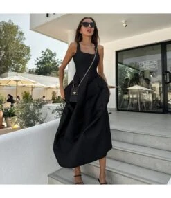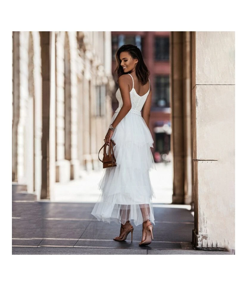 Elegant Suspenders Solid Color Woolen Gauze Stitching Dress Wholesale Dresses N461523032800112