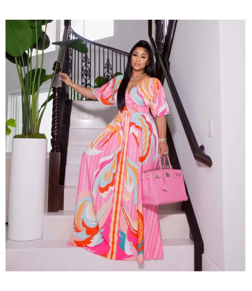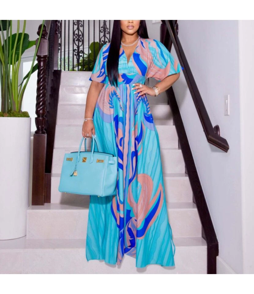 Sexy V-Neck Crossover Ruffle Sleeve Pressed Pleat Dress Wholesale Dresses N5923080800028