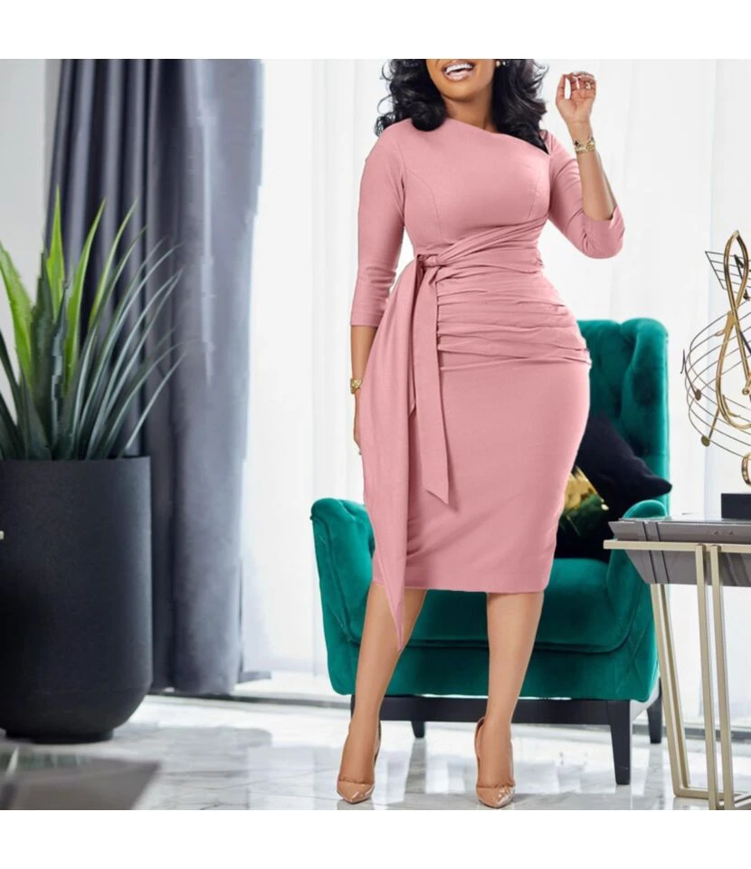 Fashion Long Sleeve Suit Collar Lace-Up Waist Pressed Pleated Dress Wholesale Dresses N5323032800171