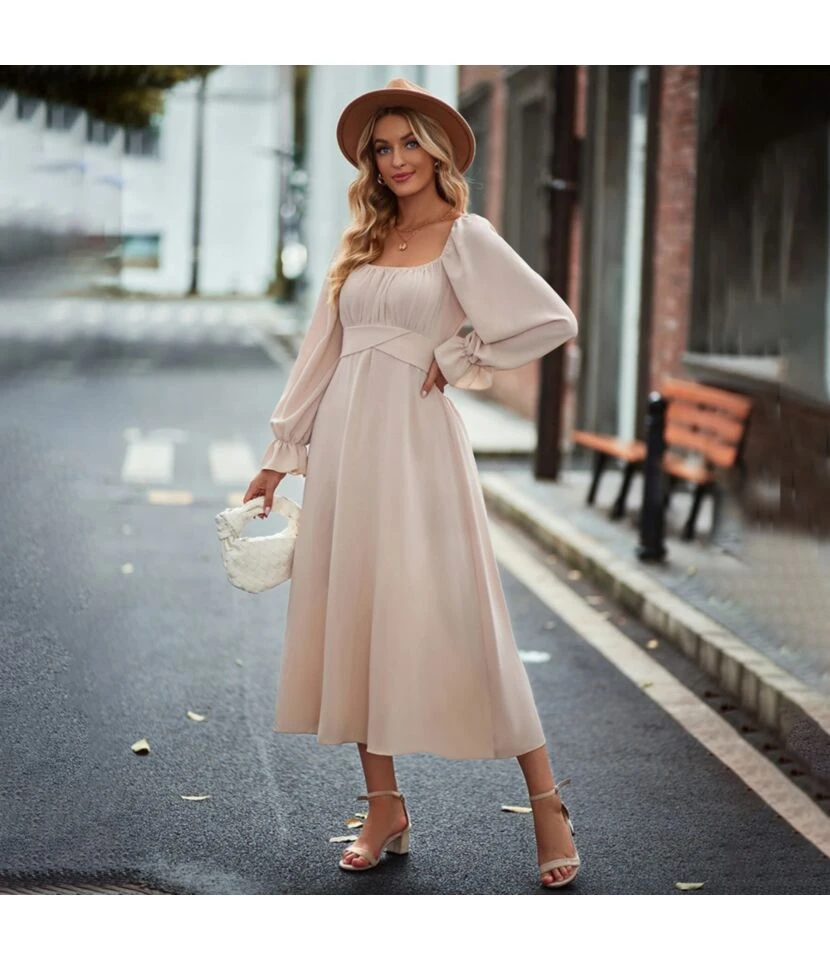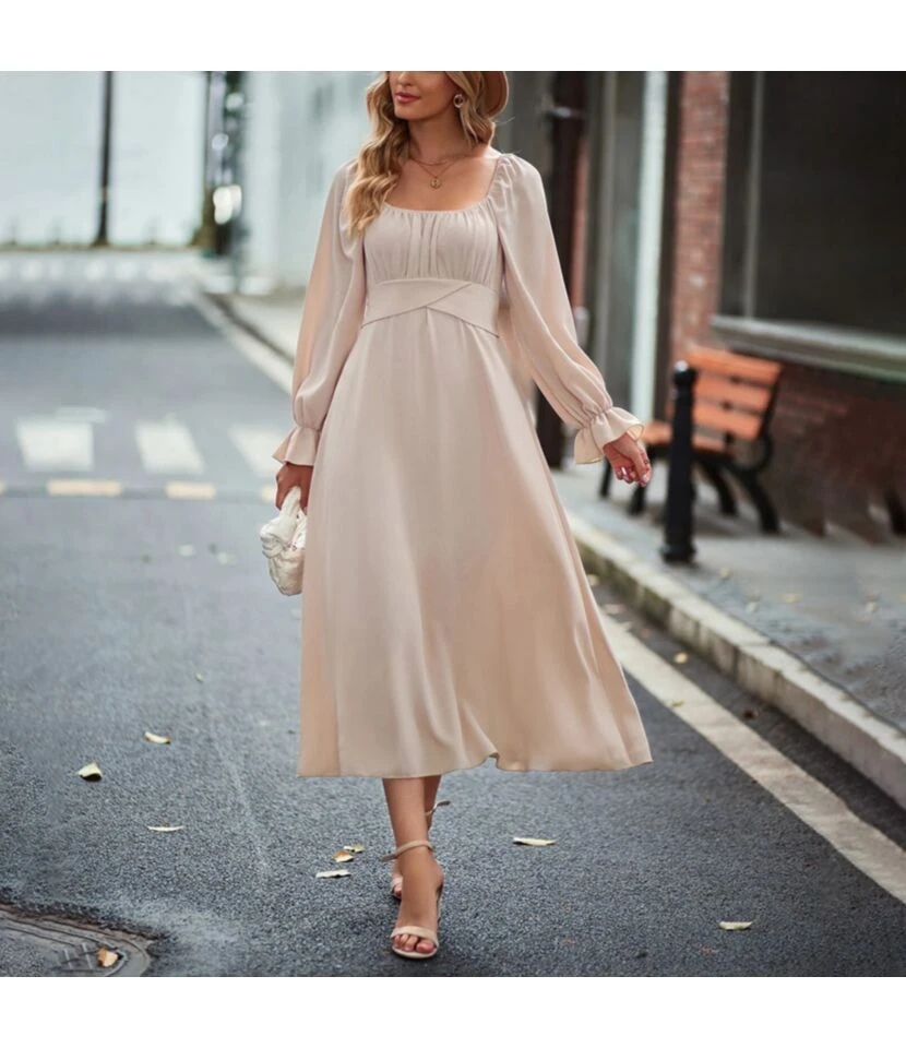 Solid Color V-Neck Hollow Stitching Mid-Sleeve Commuter Dress Wholesale Dresses N4623052500032
