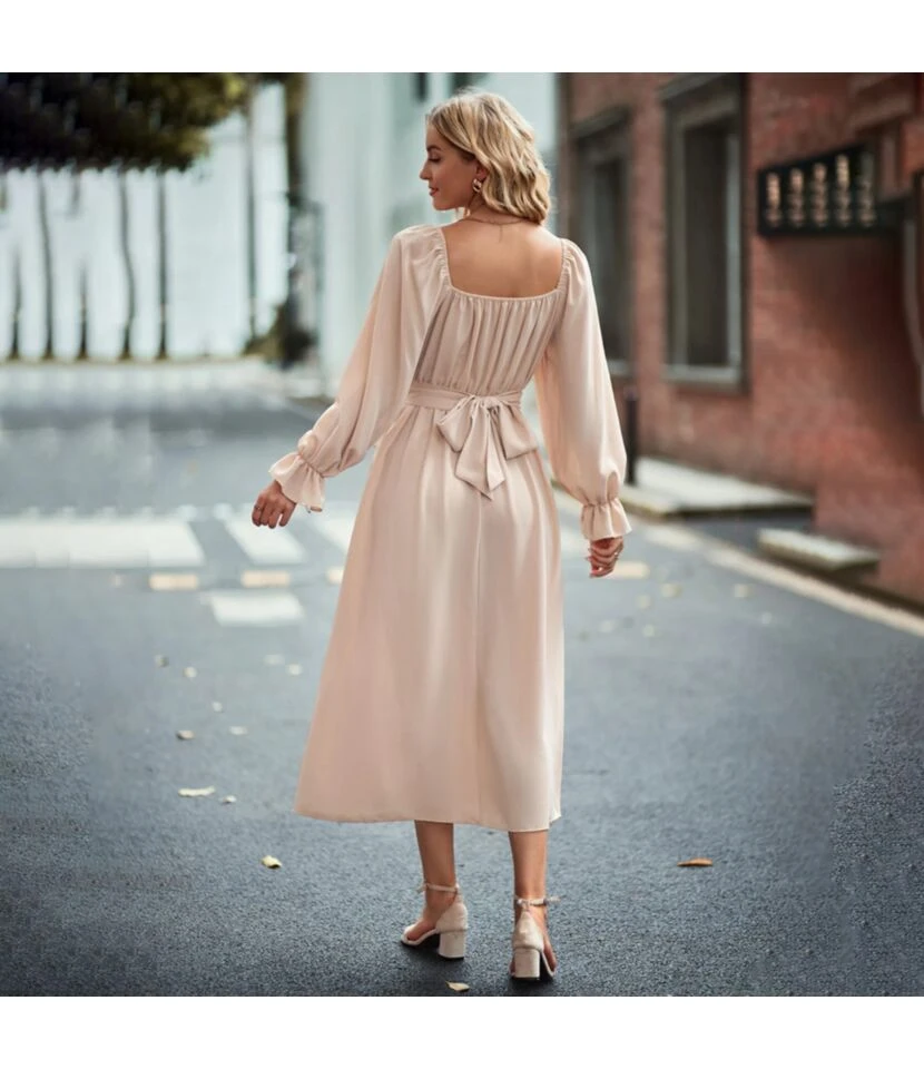 High Waist Slit Long-Sleeve Hollow V-Neck Midi Bag Hip Sexy Dress Wholesale Dresses SDN537990