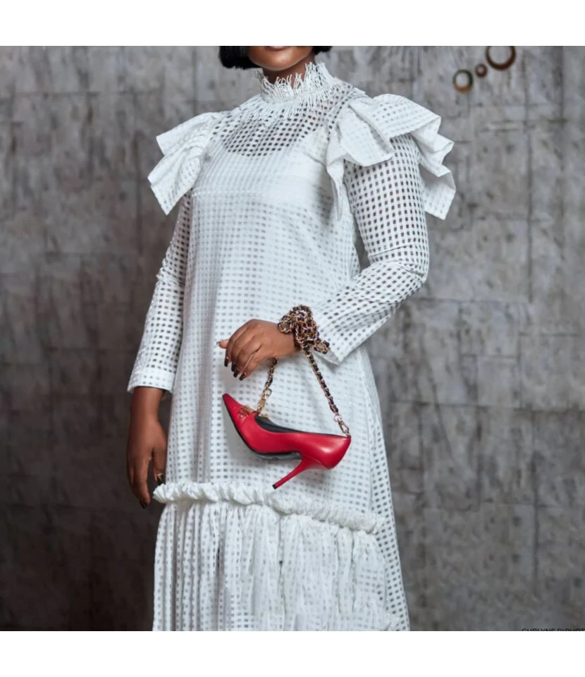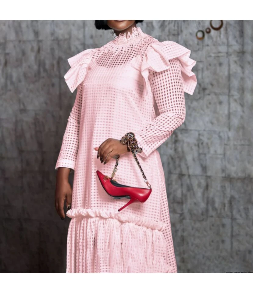 Elegant Flower Petal Sleeve Solid Color Square Neck Long Dress Wholesale Dresses V5923041200032