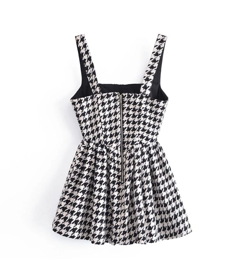 Houndstooth Suspender Mini Dress High Waist A-Line Slim Wholesale Dresses SDN561212