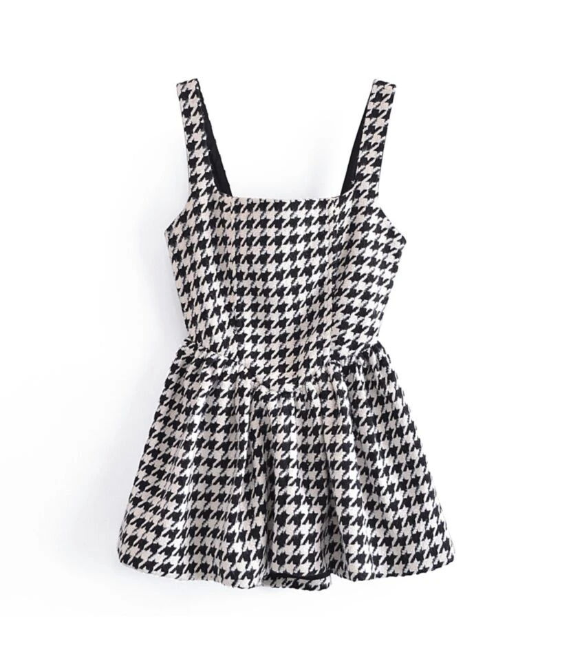 Be the first to review “Houndstooth Suspender Mini Dress High Waist A-Line Slim Wholesale Dresses SDN561212” Cancel reply