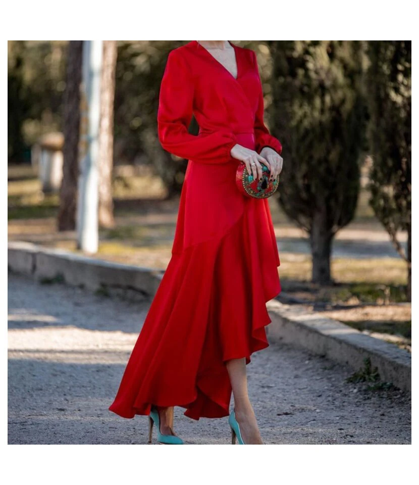 Be the first to review “Irregular Ruffled Fashionable Long-Sleeved V-Neck Maxi Dress Wholesale Dresses SDV464122” Cancel reply