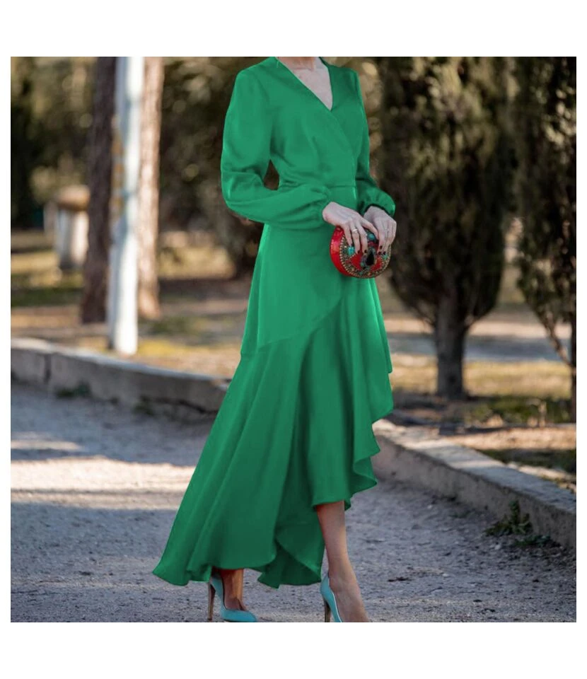 Irregular Ruffled Fashionable Long-Sleeved V-Neck Maxi Dress Wholesale Dresses SDV464122