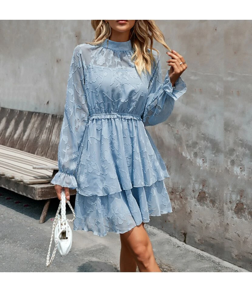 Jacquard Temperament Elegant Round Neck Long-Sleeved Dress Wholesale Dresses N4623071700111