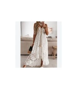 Lace Fringe Solid Color Irregular Hem Wide Swing Slip Maxi Dresses Wholesale Bohemian Dress For Women SD531220