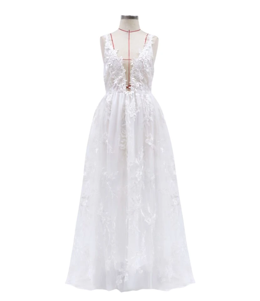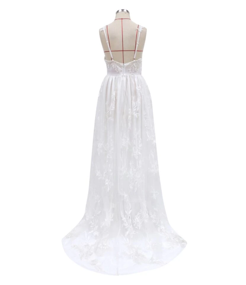 Lace Stitching Embroidery Deep V Sling Wide Swing White Wedding Dress Wholesale Maxi Dresses SDN533601