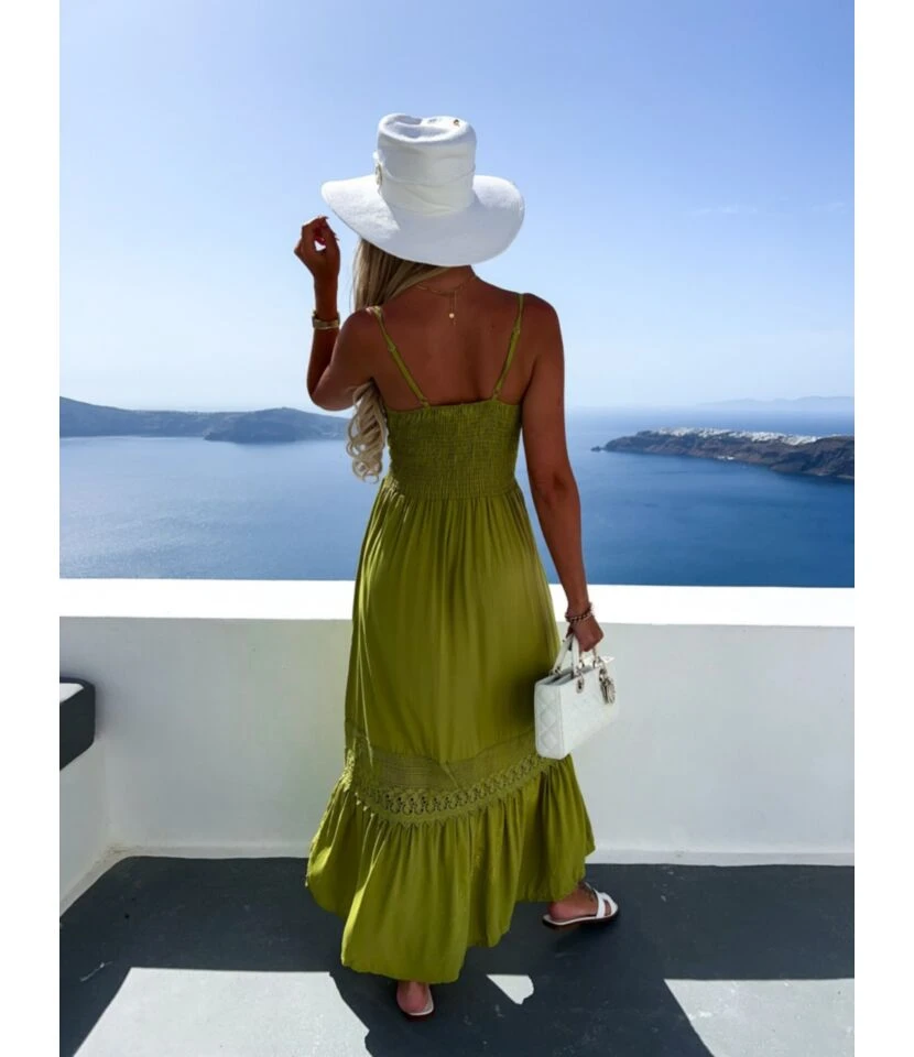 Sexy Solid Color Waist V-Neck Vacation Suspender Swing Dress Wholesale Maxi Dresses SDN539148