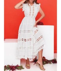 Solid Color V Neck Sleeveless Slit Trailing Dress Wholesale Womens Clothing N3823103000074