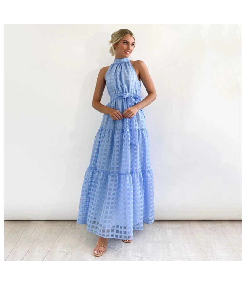 Plaid Halter Neck Strapless Fashion Party Dress Wholesale Dresses N46323032800112
