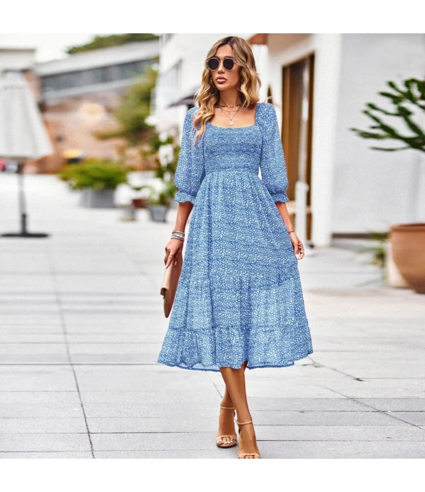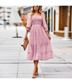 Vintage Square Neck Low Cut Side Slit Long Sleeve Skinny Dress Wholesale Dresses SDV464528