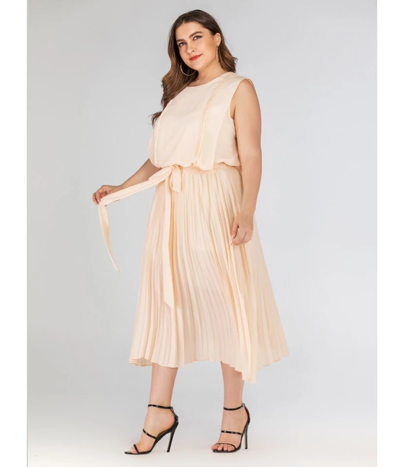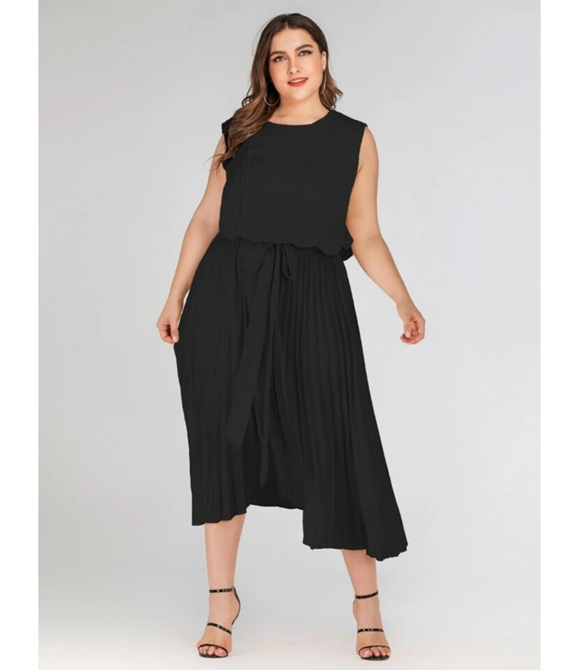 Be the first to review “Pure Color Sleeveless Tie Waist Pleated Dress” Cancel reply
