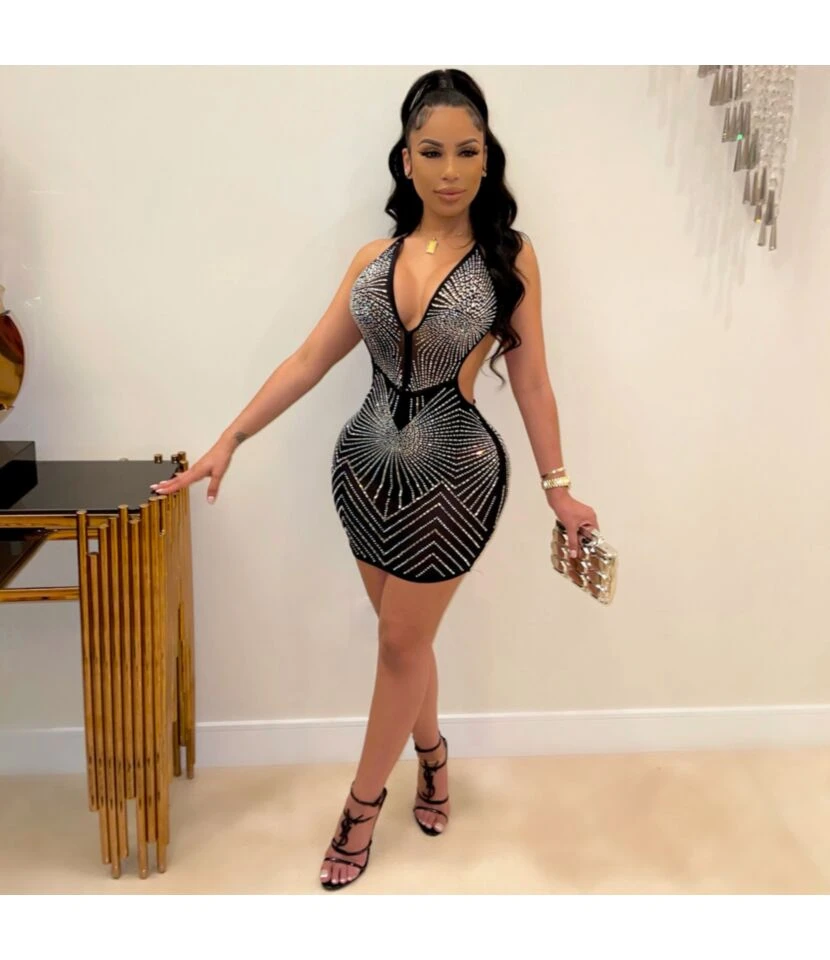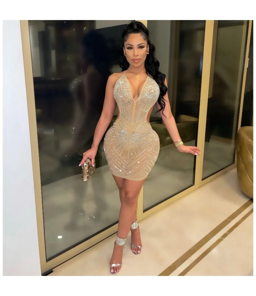 Sexy Deep V Sling Hot Drilling Backless Party Nightclub Bodycon Mini Dress Wholesale Dresses SD5117880
