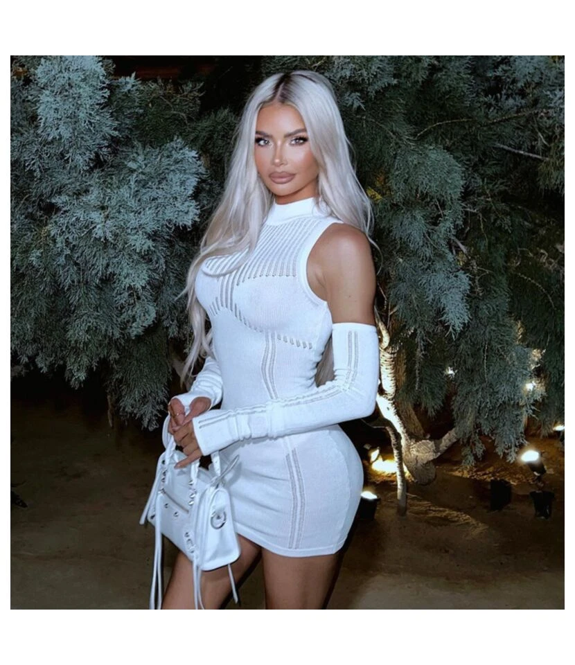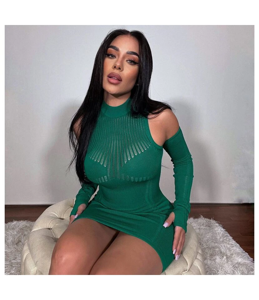 Sexy Halter-Neck Hollow Strap Tight Long Sleeve Bodycon Dress Wholesale Dresses SDN538004