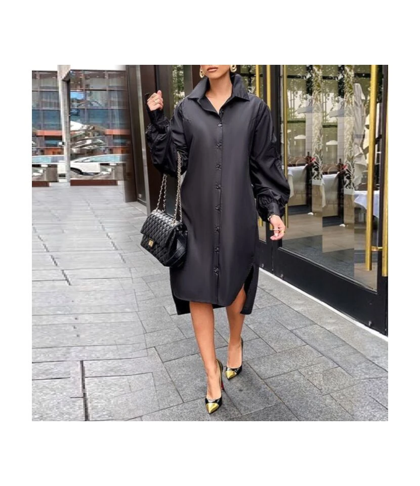 Loose shirt dress, simple and stylish, fits for all occasions.
