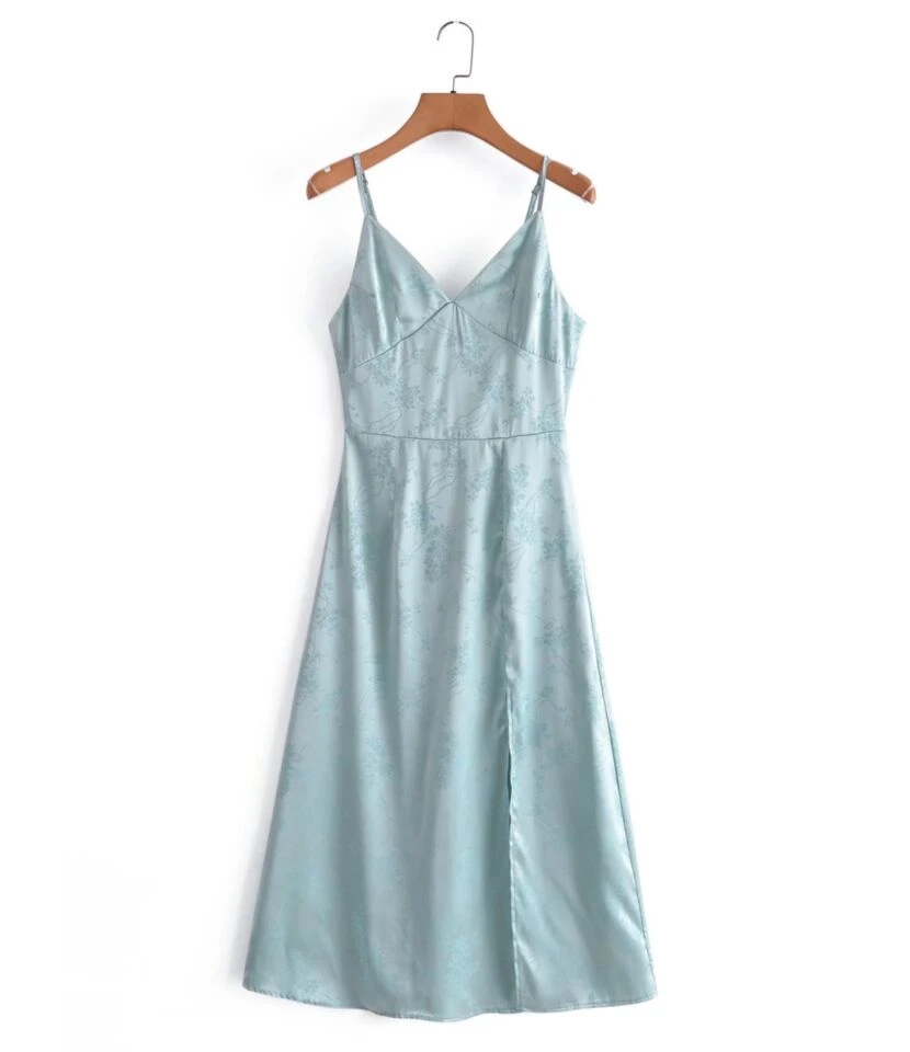 Be the first to review “Solid Color Deep-V Neck Jacquard Nipped Waist Side Slit Sling Satin Dress Chic Wholesale Dresses SDN532429” Cancel reply