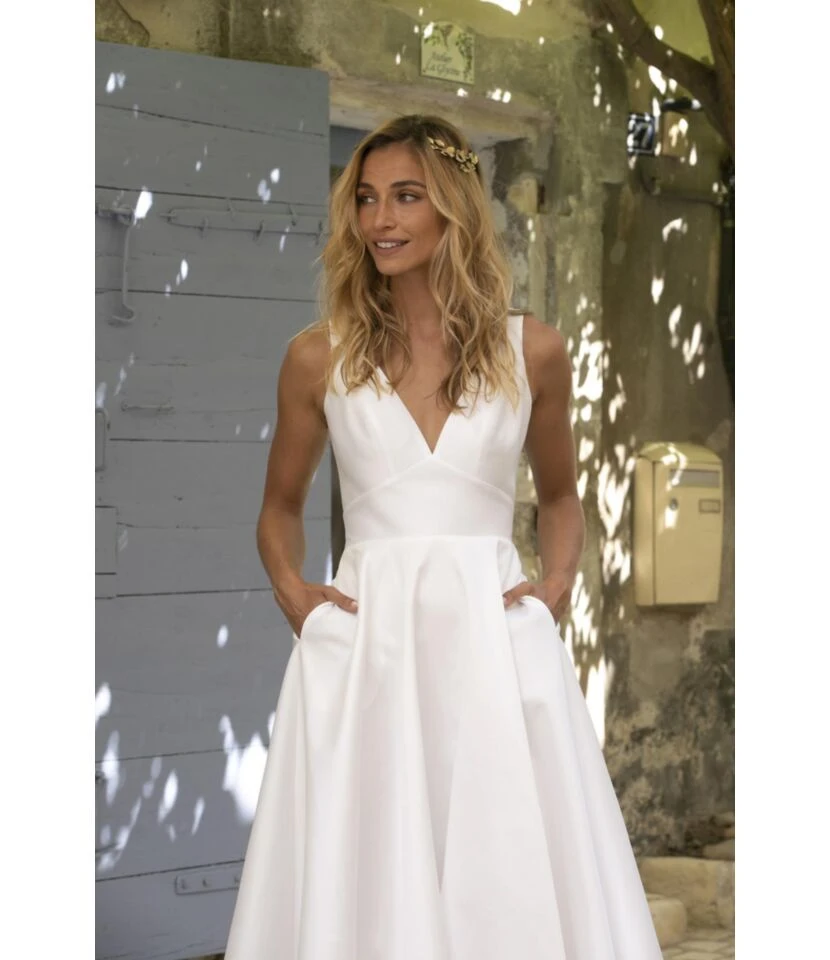 Commuting Short-Sleeved Solid Color Pleated V-Neck Dress Wholesale Dresses N461623030900084