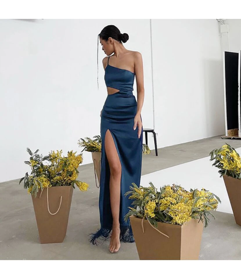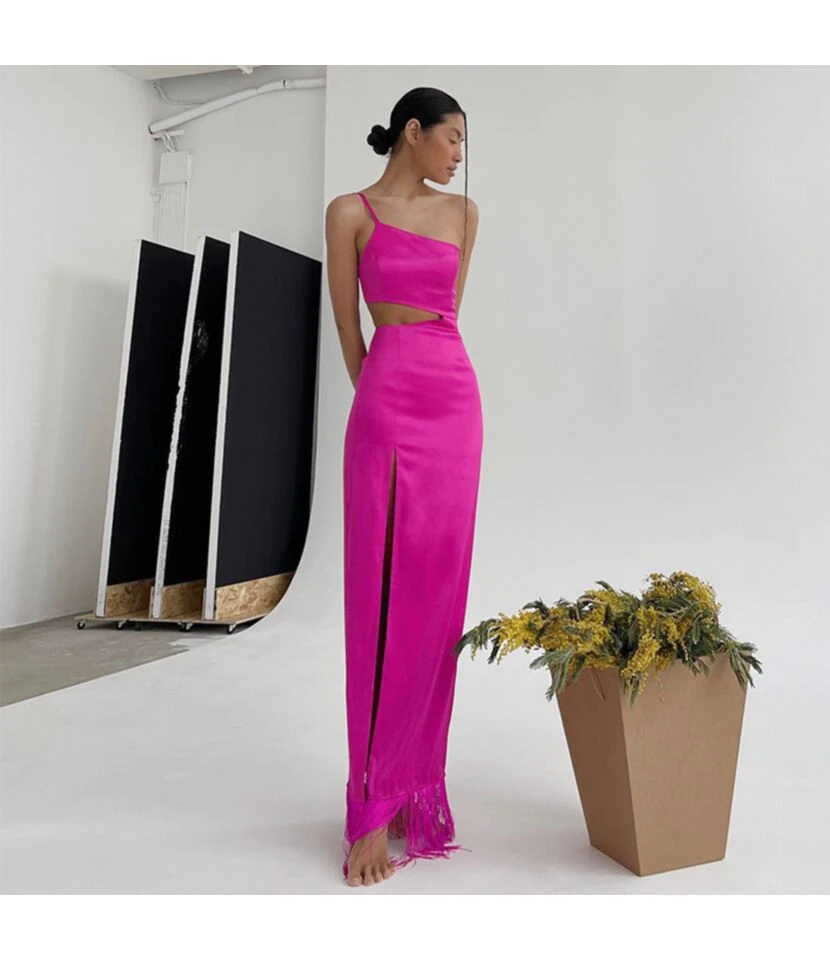Sexy Solid Color Waist V-Neck Vacation Suspender Swing Dress Wholesale Maxi Dresses SDN539148