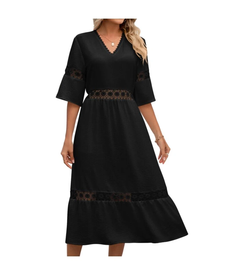 Be the first to review “Solid Color V-Neck Hollow Stitching Mid-Sleeve Commuter Dress Wholesale Dresses N4623052500032” Cancel reply