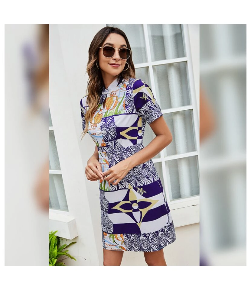 Summer Short Sleeve Fashion Printed Pullover Wholesale Ladies Shirt Dress Casual SD183630