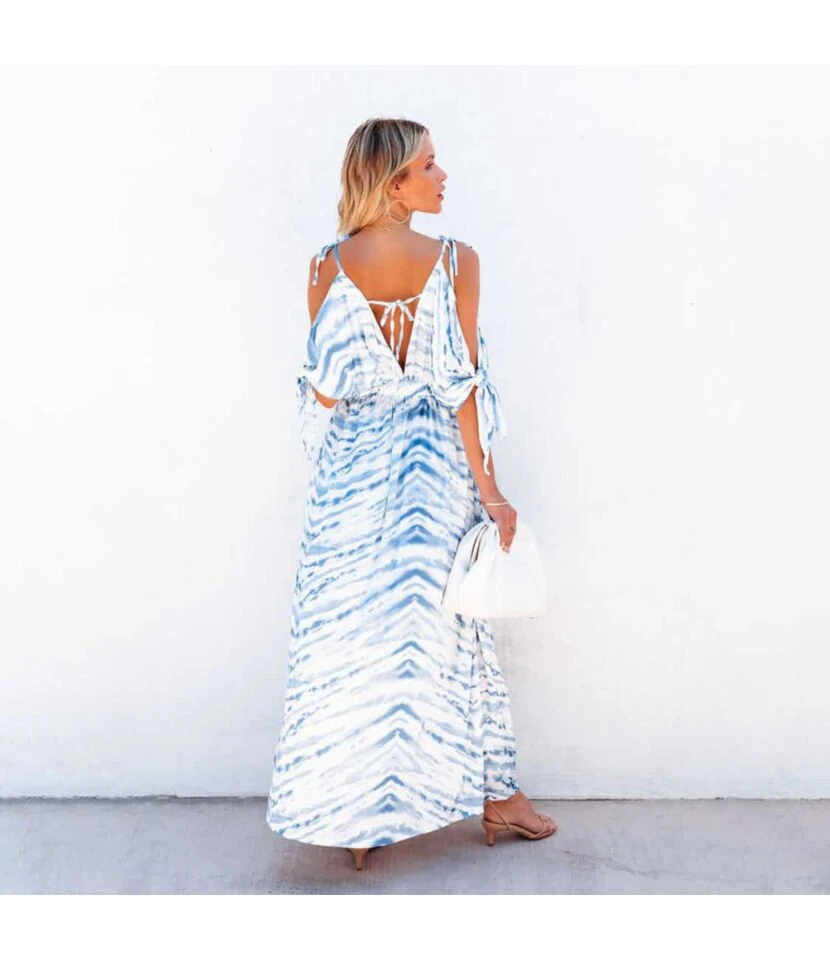 Sexy Solid Color Waist V-Neck Vacation Suspender Swing Dress Wholesale Maxi Dresses SDN539148