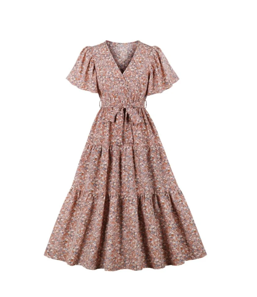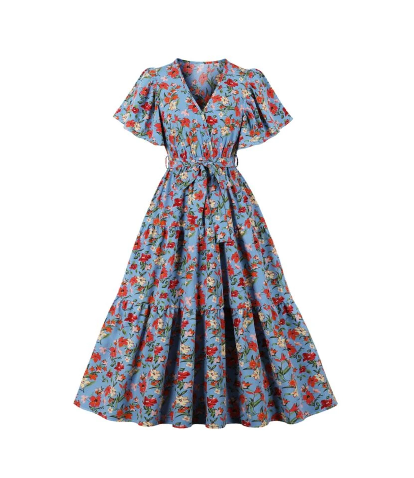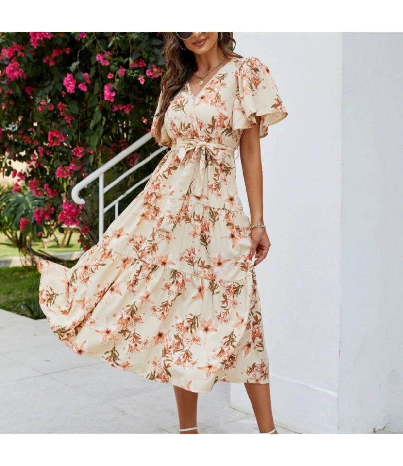 Elegant Casual Fashion High Waist V-Neck Holiday Long Smocked Dress Wholesale Dresses N5323030700084