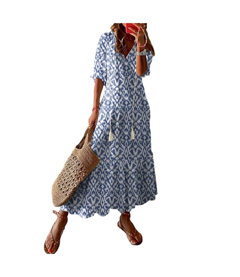 Be the first to review “V-Neck Geometric Print Puff Sleeve Tie Dress Wholesale Dresses” Cancel reply