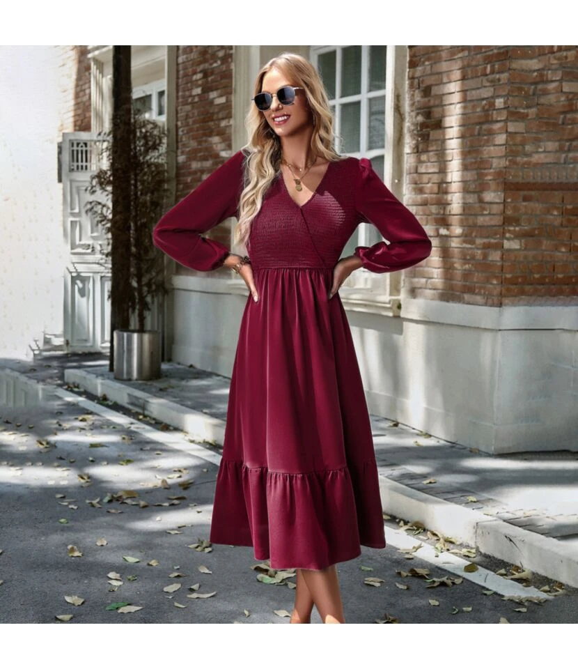 Casual Long Sleeve V Neck Tie Irregular Cake Dresses Wholesale Dresses N5923090100070