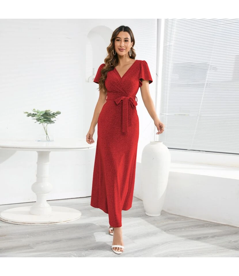 Elegant Sexy V-Neck Slip Sequin Maxi Slit Dress Evening Sleeveless Wholesale Dresses SDN562258