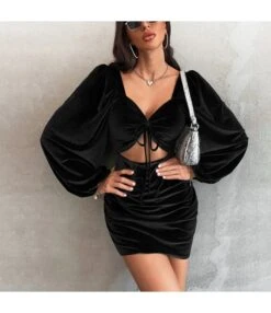Be the first to review “Velvet Sexy Cutout Tie-Up Dress Long Sleeve Solid Color Bodycon Wholesale Dresses SDN561545” Cancel reply