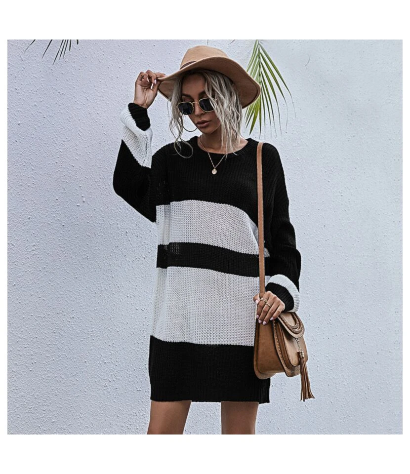 WHOLESALE WOMEN CLOTHING SPLICING STRIPED SWEATER DRESSES