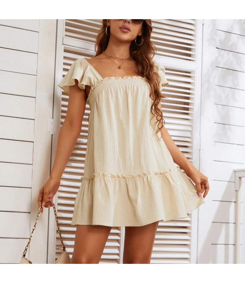Elegant Flower Petal Sleeve Solid Color Square Neck Long Dress Wholesale Dresses V5923041200032