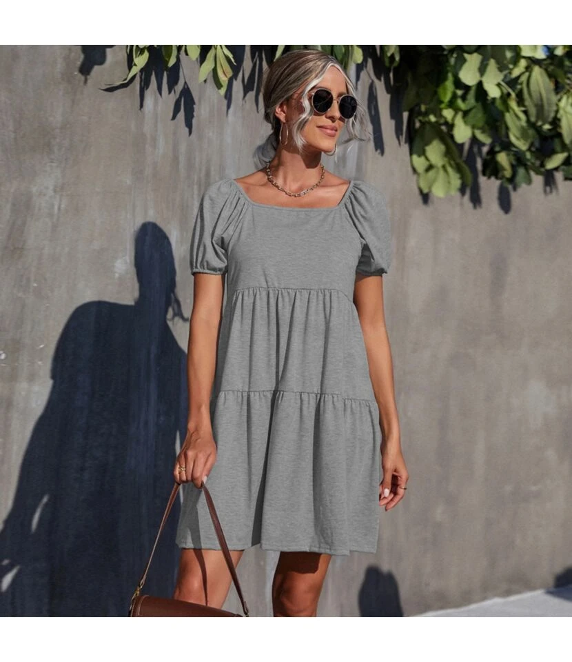 Women Fashion Square Neck Short Sleeve Wholesale Pleated Dresses SD204256