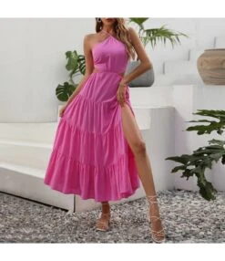 Be the first to review “Women Halterneck Sleeveless Plain Color Hollow Out Wholesale Smocked Dresses SDN580805” Cancel reply